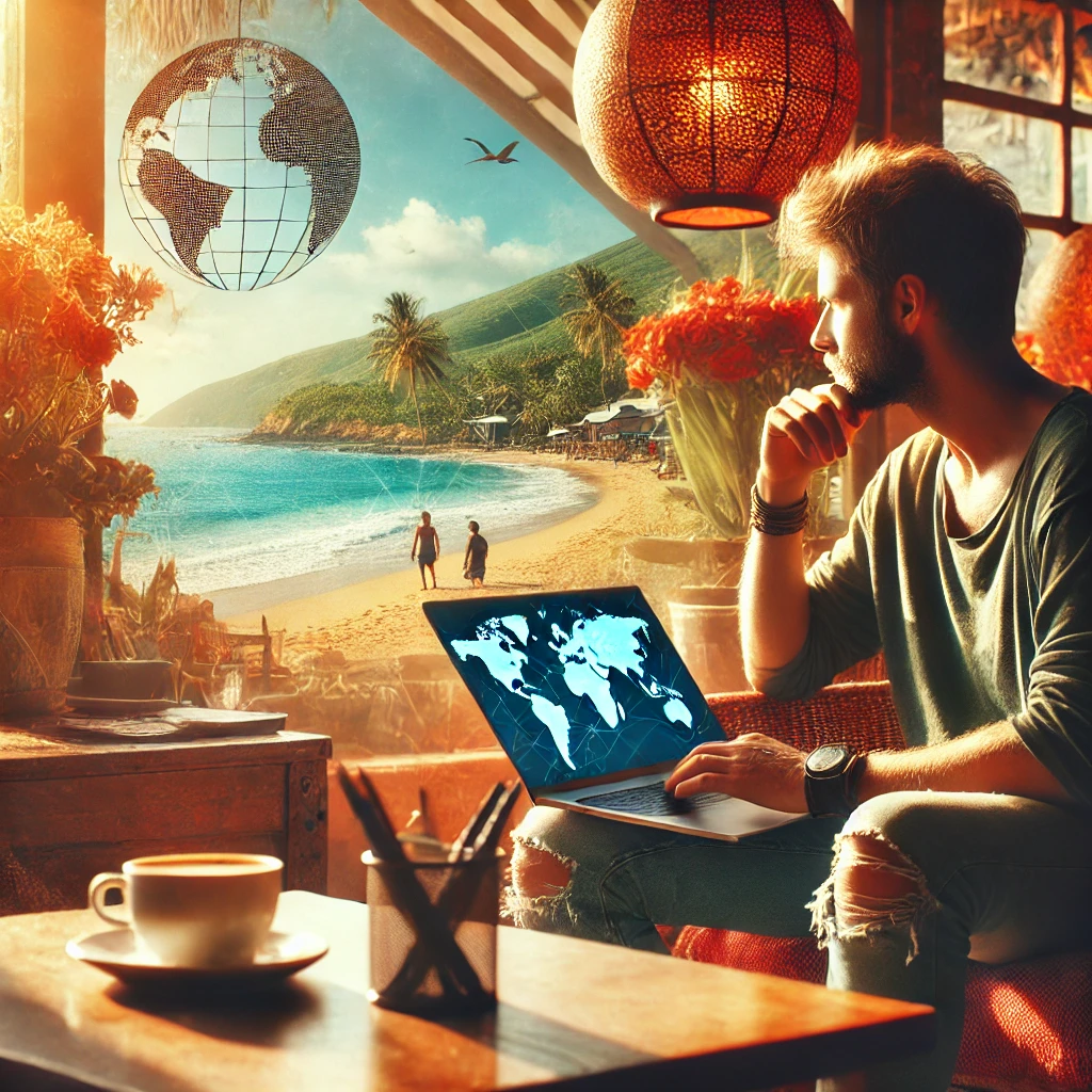 디지털 노마드는 특정한 장소에 얽매이지 않고 원격으로 일하면서, 다양한 나라를 여행하거나 원하는 곳에서 생활하는 라이프스타일을 의미한다. 이들은 주로 카페, 코워킹 스페이스, 또는 에어비앤비 같은 단기 숙소에서 일하며, 세계 여러 나라를 옮겨 다니면서도 수익을 창출한다.