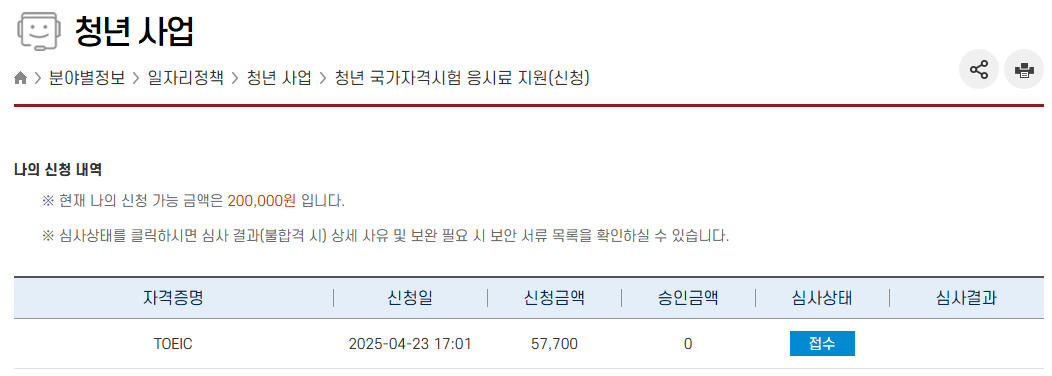 취업 준비하면서 토익 시험 응시료도 큰 부담이죠? 특히 여러 번 시험을 보게 되면 지출이 꽤 커지는데요 이런 청년들을 위해 국가자격시험 응시료를 지원하는 사업을 운영하고 있습니다. 저도 이번에 토익 시험을 보고 이 지원금을 신청했어요!